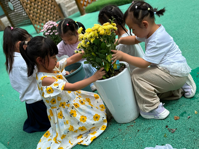 活动前:对话“土地”,做好准备。活动开始前,老师和孩子们围坐在一起,开启了一场关于“种植”的奇妙谈话。活动中:亲手播种,解锁“种植技能”。终于迎来了最期待的种植时刻!小田园里、阳光房里,到处都是孩子们忙碌的小身影。活动后:分享快乐,留住成长。种植结束后,孩子们拉着老师和同伴,兴奋地分享自己的“劳动成果”,你一言我一语的交流里,藏着对植物的期待,也藏着合作与分享的快乐。
