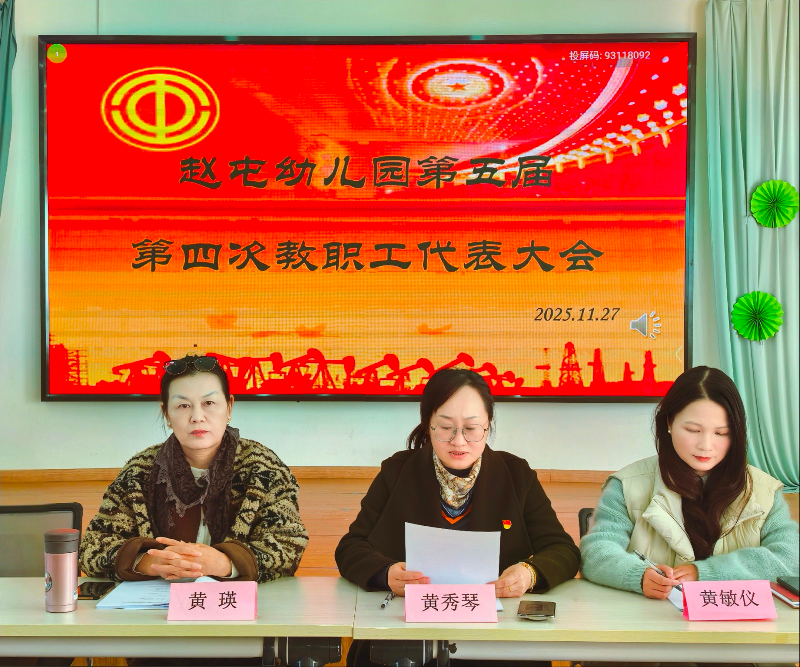 全体代表以高度的责任感和使命感,认真听取并审议了《赵屯幼儿园“十四五”规划实施总结评估报告》《赵屯幼儿园绩效工资方案(2025修改)》《赵屯幼儿园安全隐患内部报告奖励机制》。