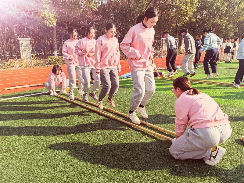 本次运动会共设五个比赛项目,分别是双人跳短绳、飞盘掷准、5米跳长绳、双人踢毽子、多人跳竹竿,可谓将趣味性与竞技性完美融合,让教职工们在运动中享受快乐,在挑战中展现风采。
