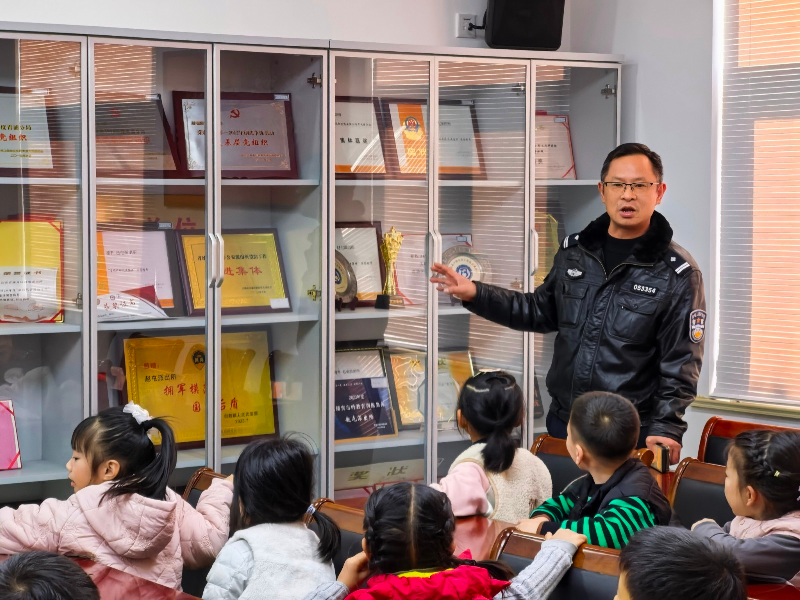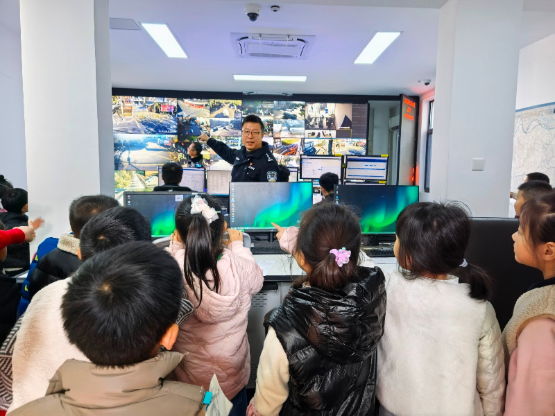 走出校园,走进法治实景课堂!在赵屯派出所章警官的带领下,大班幼儿怀着好奇与期待参观了赵屯派出所。在民警的带领下参观了办事大厅、监控室等,实地体验让抽象的法治概念变得生动可感,幼儿的安全意识和法治观念在亲身体验中得到进一步增强。