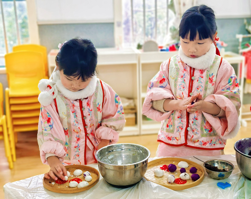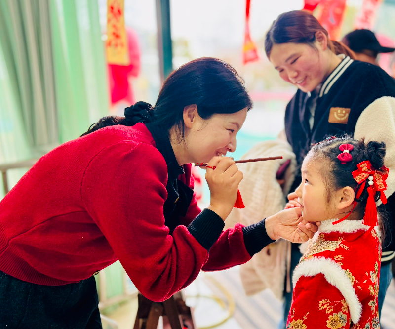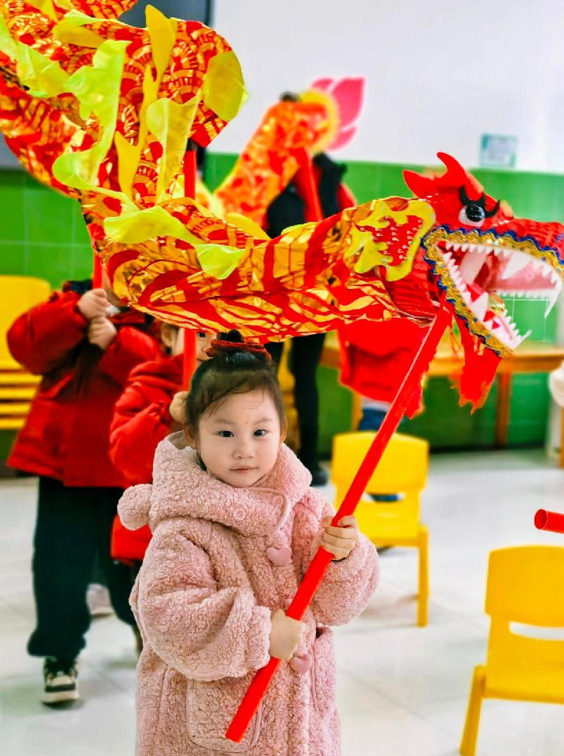 全园萌娃身着节庆盛装,在沉浸式的传统体验中迎接新学期,品味浓浓中国年。活动现场,老师们为每位孩子“朱砂启智”,寄托聪慧美好的祝愿;阵阵鼓声振奋人心,寓意一鼓作气、茁壮成长。在传统习俗体验环节,孩子们剪窗花、拓福字、做鞭炮、搓汤圆,一起猜灯谜、舞龙,在传统习俗中感受年味,在动手体验中收获成长。
